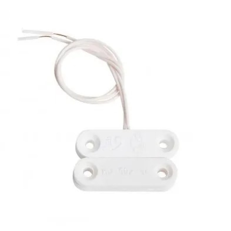 Магнитоконтактный; контакты размыкаются при тревоге; 12 мм (контакты замкнуты), 45 мм (контакты разомкнуты); U-коммут.72 В, I-коммут.500 мА, P-коммут.10 Вт; t-раб.-50…+50°С; 35х10х10.5 мм (геркон и магнит). Кабельный отвод. Пластиковый корпус. 0.01 кг