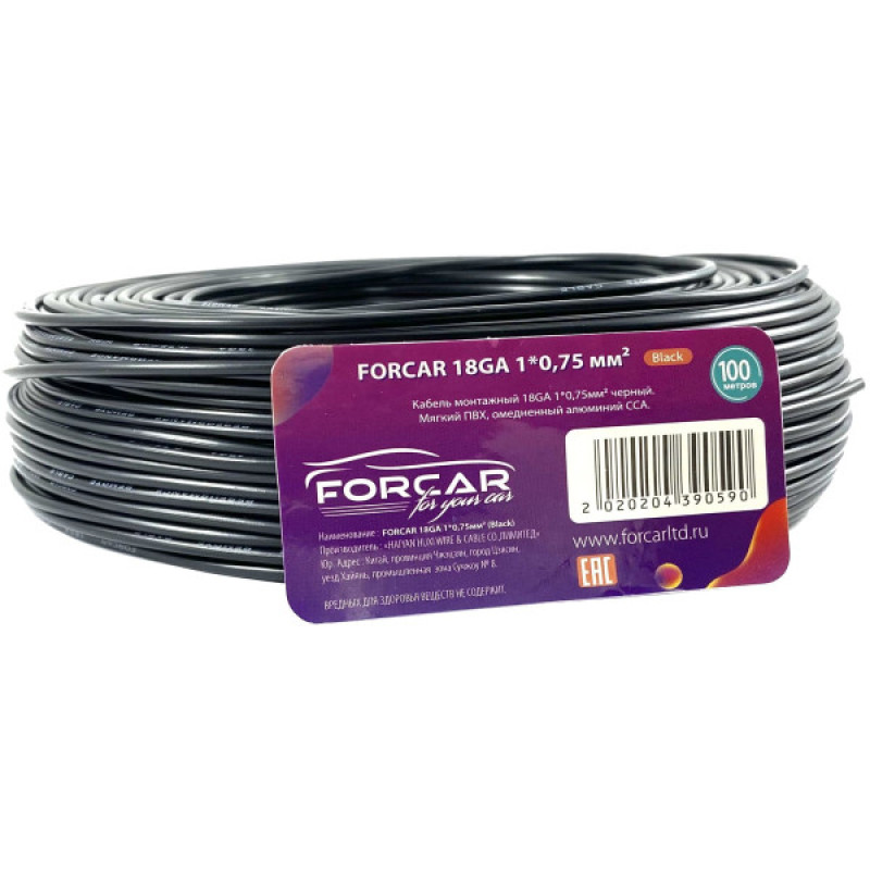 ACC-18Ga| Провод автомоб 0.75 черный "Forcar" (бух 100 м)(АК)